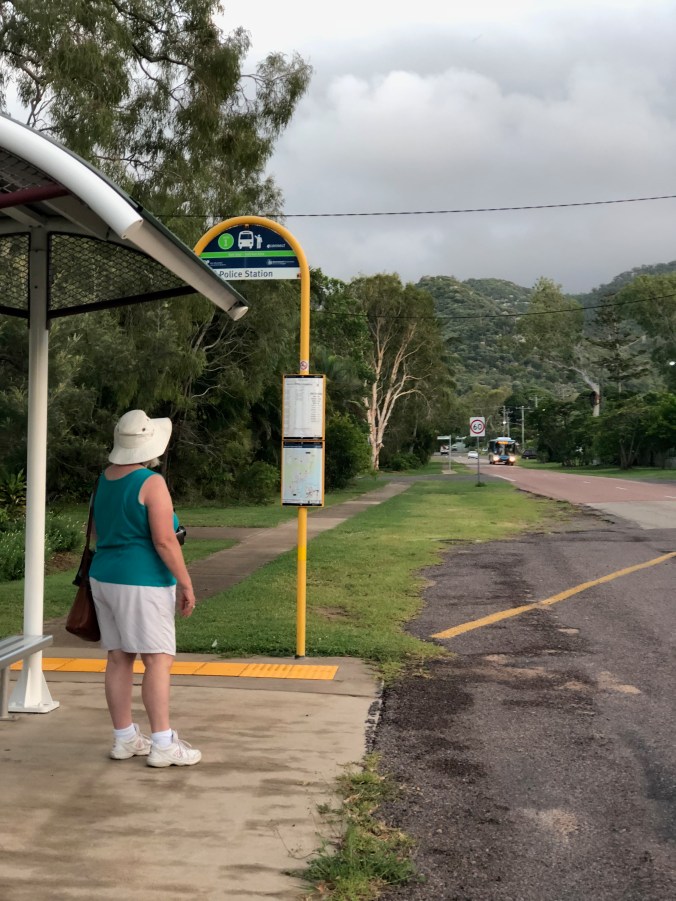 Right after we arrived we walked down to Picnic Bay about 5 blocks from our AirB&B. There we met Sheila, Sheila had lived on Magnetic Island for 20 years. We met her through her dog, and talked a long time. We agreed to stop by for tea the next morning and we asked her to come along with us and be our guide. She knew how to dress for the heat.