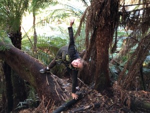 Triangle pose on tree