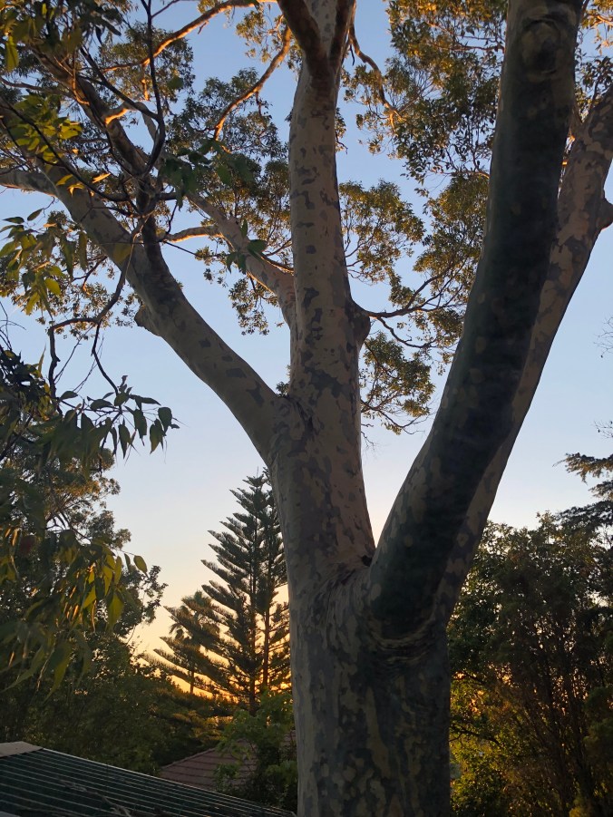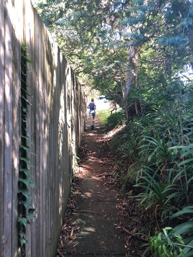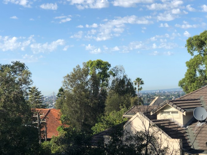 Through the trees and roofs one can glimpse the harbor and the bridge. I can feel the city vibrating around me.