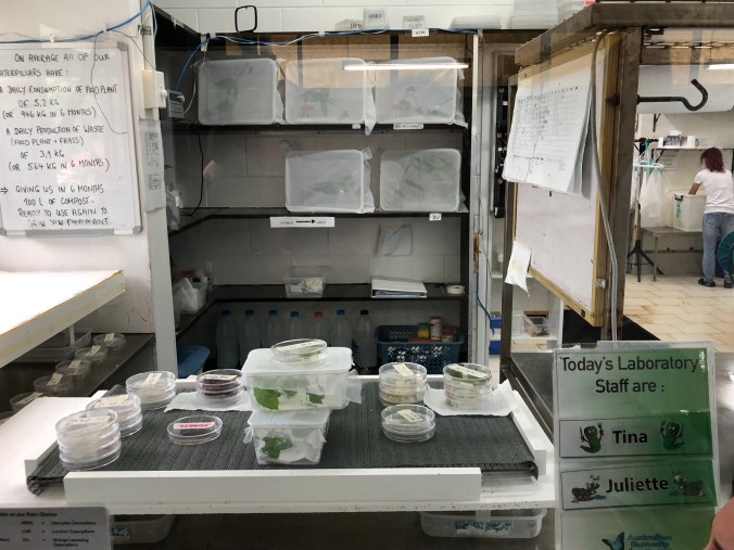 They raise the food and care for 18 different varieties of Australian butterflies including the endangered birdswing butterfly I video taped in bush in the blog: Birdwing butterflies and the Leeches of Booroobin. There weren’t any leeches here and the friendly butterflies landed on my hat and shirt.
