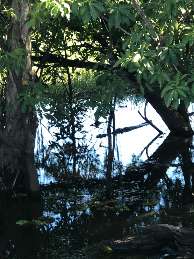 We continued on and spotted our first crocodile. It look like a log floating under a tree.