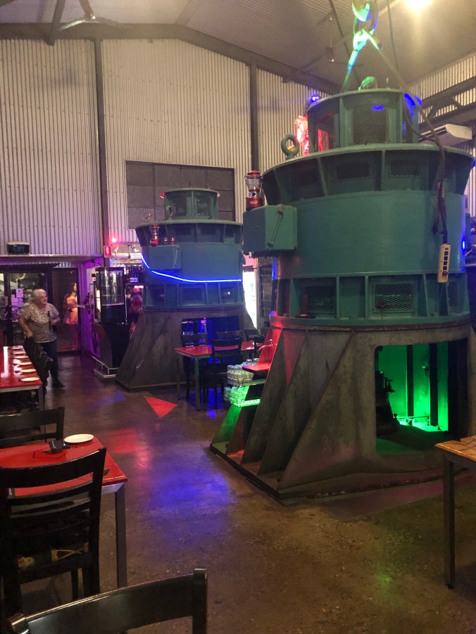 We landed in Broome where we had lunch and the afternoon off. After dinner we went see “Top End Wedding ” at a very old open air theater. The setting was wonderful: