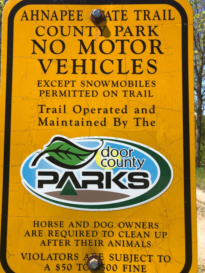 This trail is 48 miles long but we just did a small section. We could have ridden our bikes onto the trail in Sturgeon Bay but we cheated and drove a short way to county S and turned right on Tagge road where we met up with the trail and parked the car. During our half day ride through swamps and farmland, we only came across one other person walking two dogs. This ride along a repurposed railway right of way was incredibly peaceful.