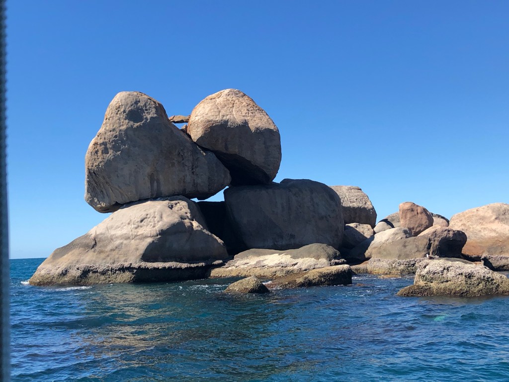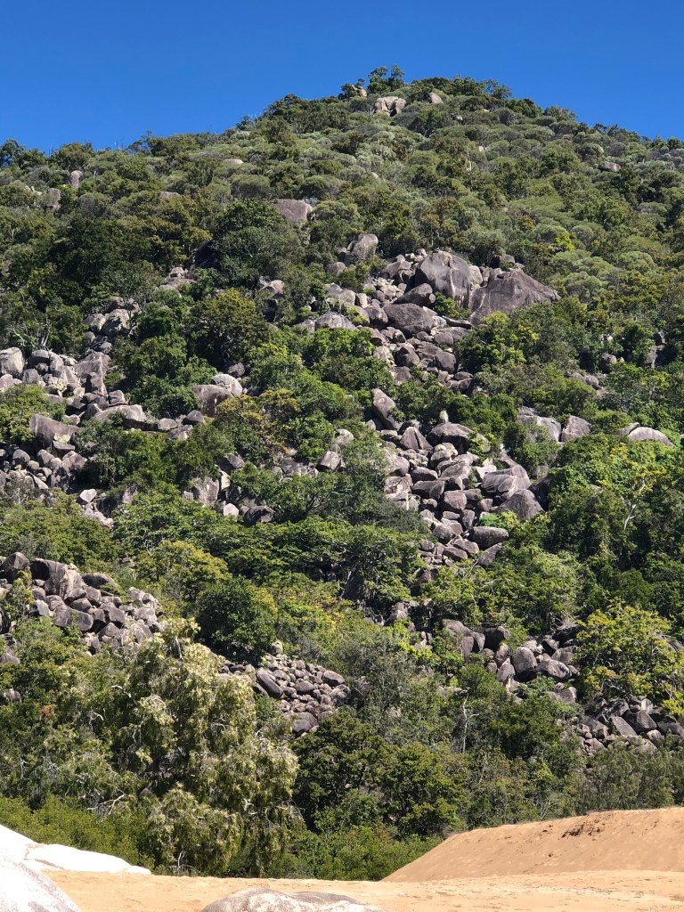 The coastline of Magnetic Island was beautiful and unusual. When Captain Cook first saw it his compass was not working right. He blamed the problems on the strange rocks that appeared to teeter on the coast. These rocks look like they could only be held in place by magnetical forces, hence he called the island magnetical island, but the al was later dropped. These granite rocks look like they are going to fall down, but they are actually very stable and have stayed in place for all man time.