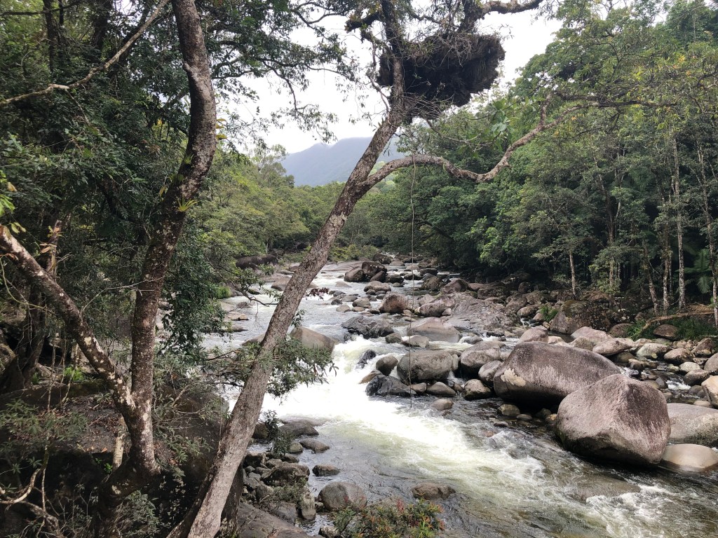 As soon as Covid was under control in Queensland. I mean really under control, no community transmission, people living in Queensland were encouraged to be tourists in their home state. I got plane reservations on Jet Star and reserved a camper van through Cruisin Motor Homes in Cairns. I did not get insurance, since we were leaving in less than a month, and it wasn’t a very expensive trip. But then two weeks later I broke my ankle–see Red Cedar Speaks. The money was spent, I was going anyway.