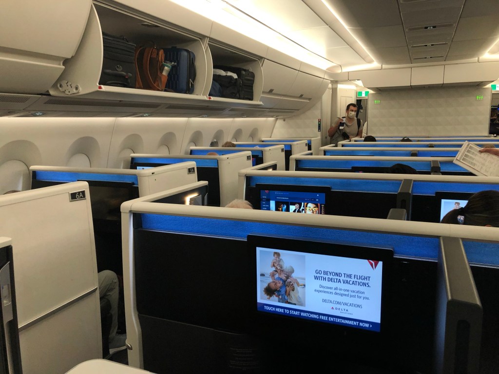 I went back to wait just five minutes for the boarding. When she scanned my boarding pass, it didn’t work. She went to the desk computer and did something then it worked. Finally I walked onto the plane, and found my seat in a Delta One cubicle.